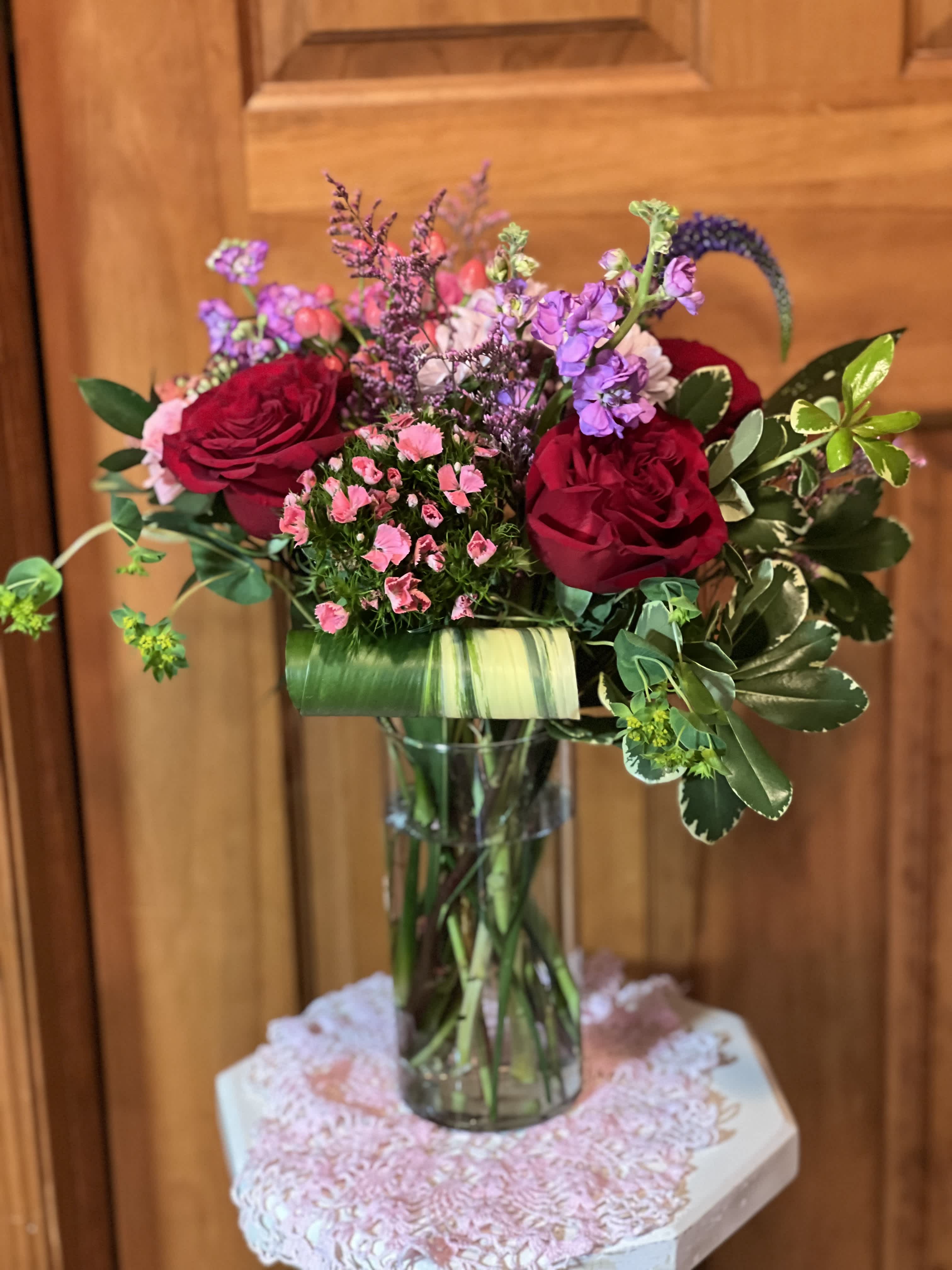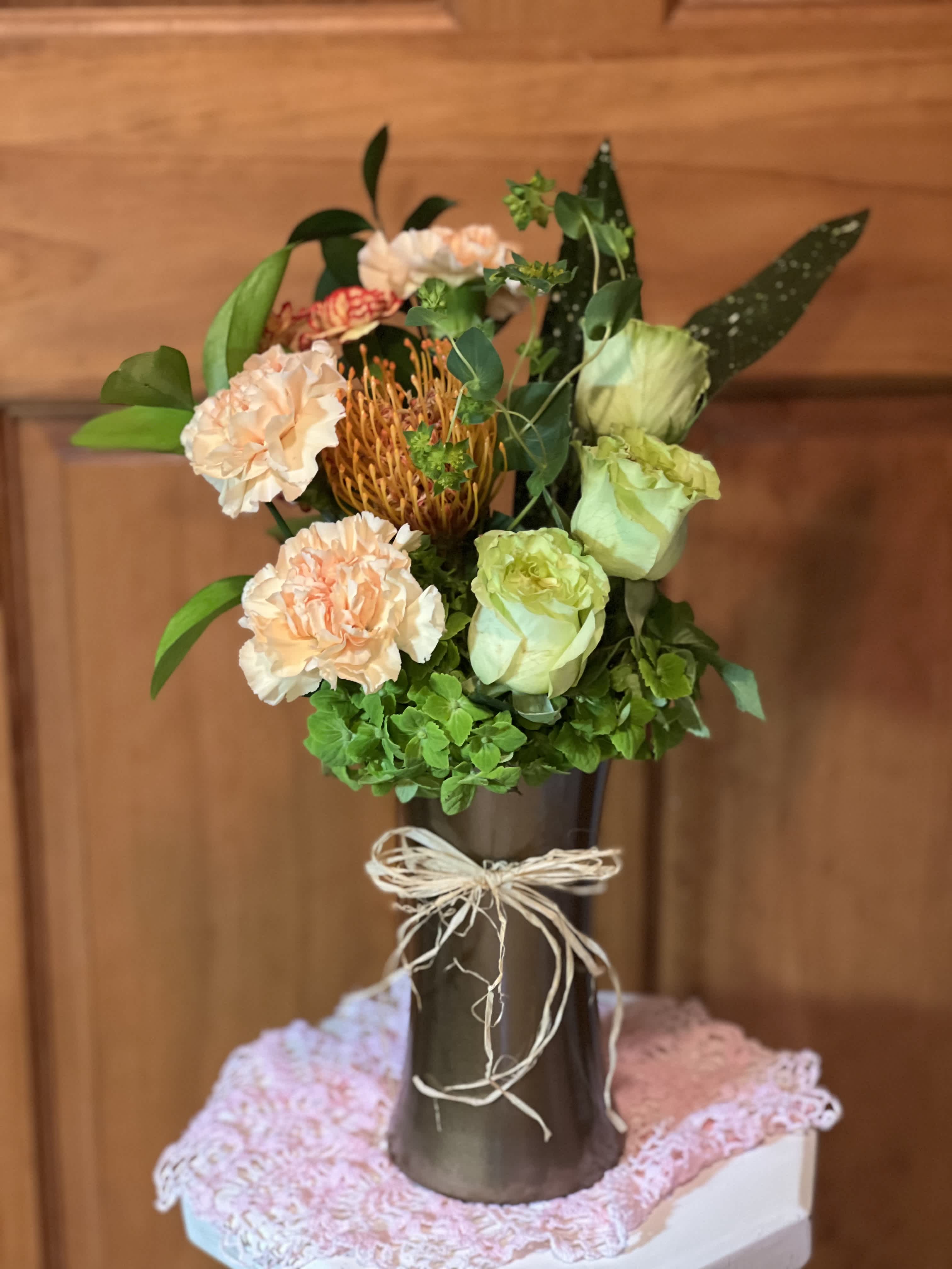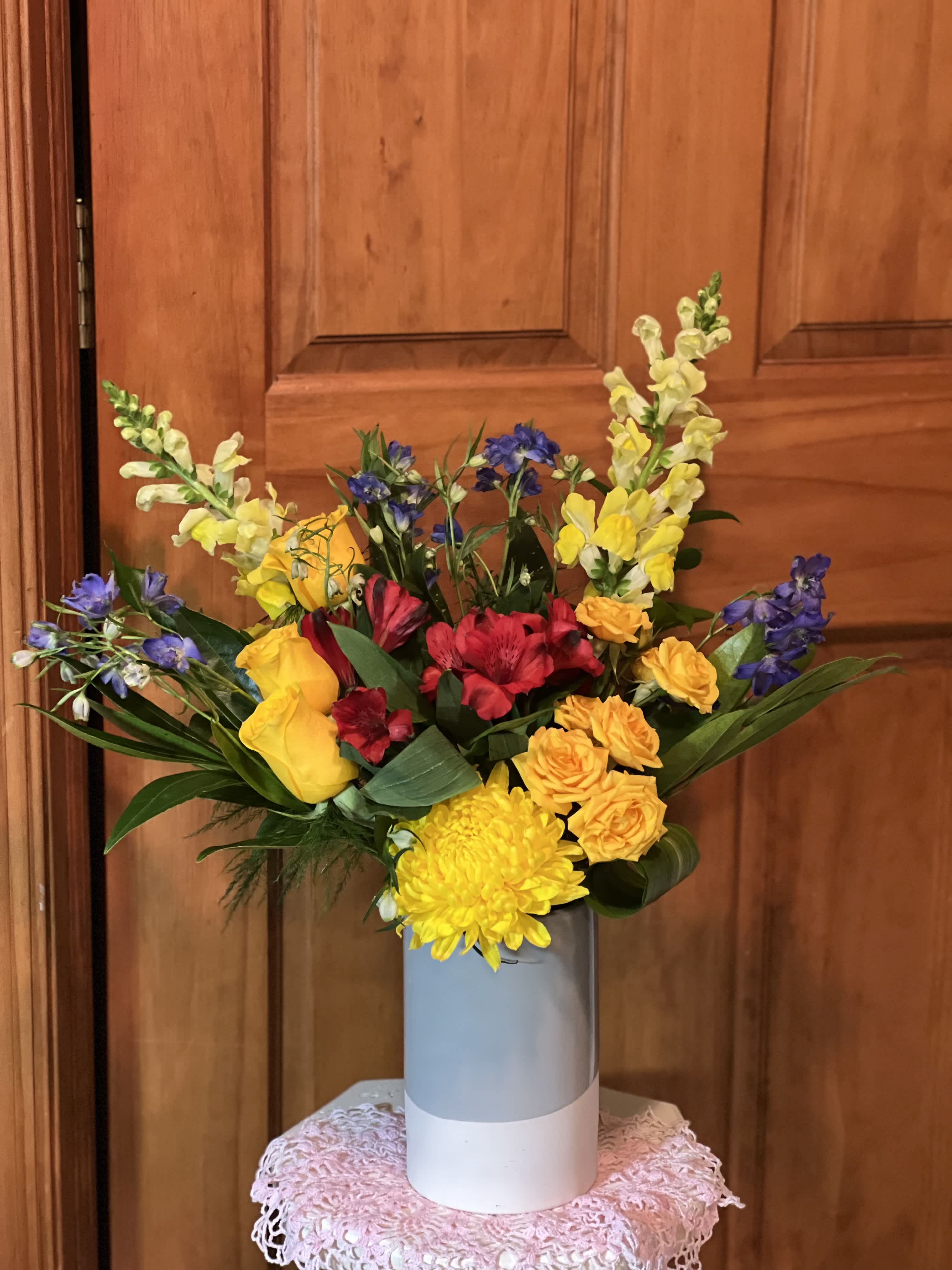 I am a Studio florist. Not a brick and mortar place of business. I am a (CFD) Certified Floral Designer with AIFD, (American Institute of Floral Design) and a women's owned business. Can't decide??? One of our Designer's Choice would be your best option.