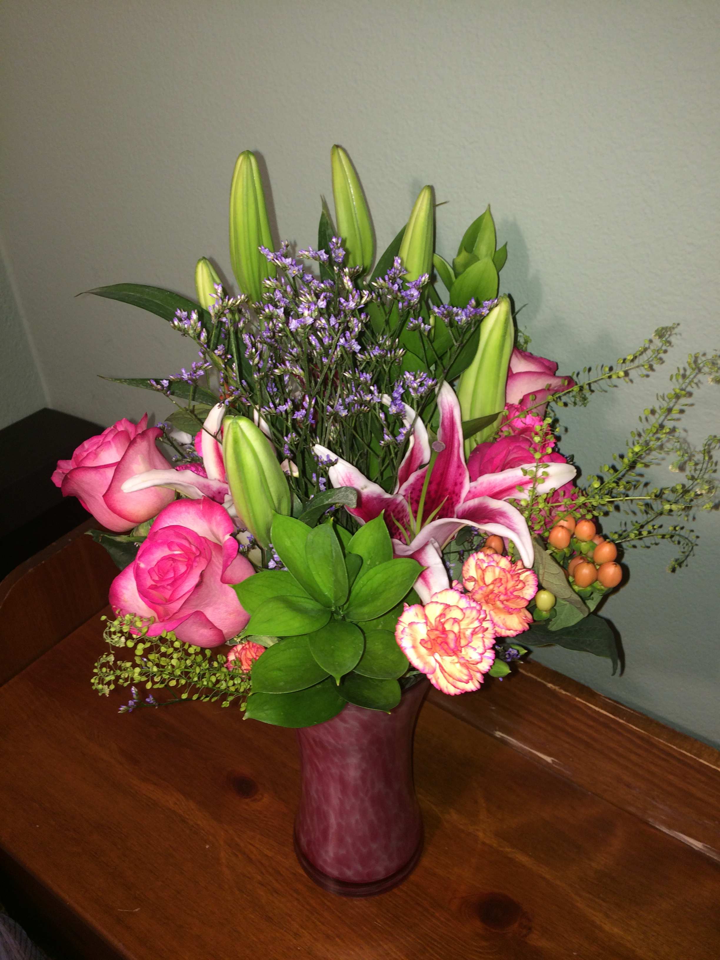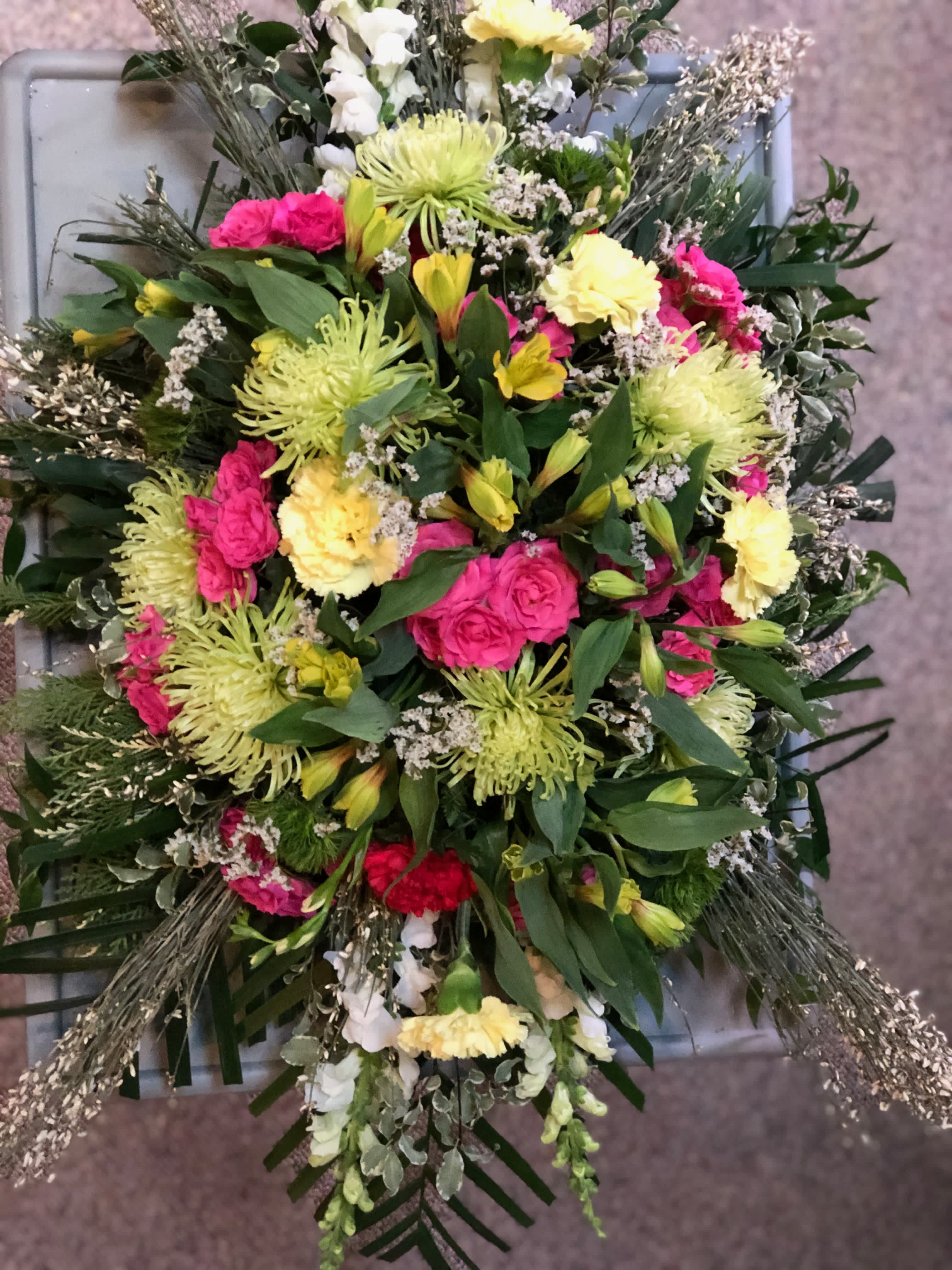 I am a Studio florist. Not a brick and mortar place of business. I am a (CFD) Certified Floral Designer with AIFD, (American Institute of Floral Design) and a women's owned business. Can't decide??? One of our Designer's Choice would be your best option.