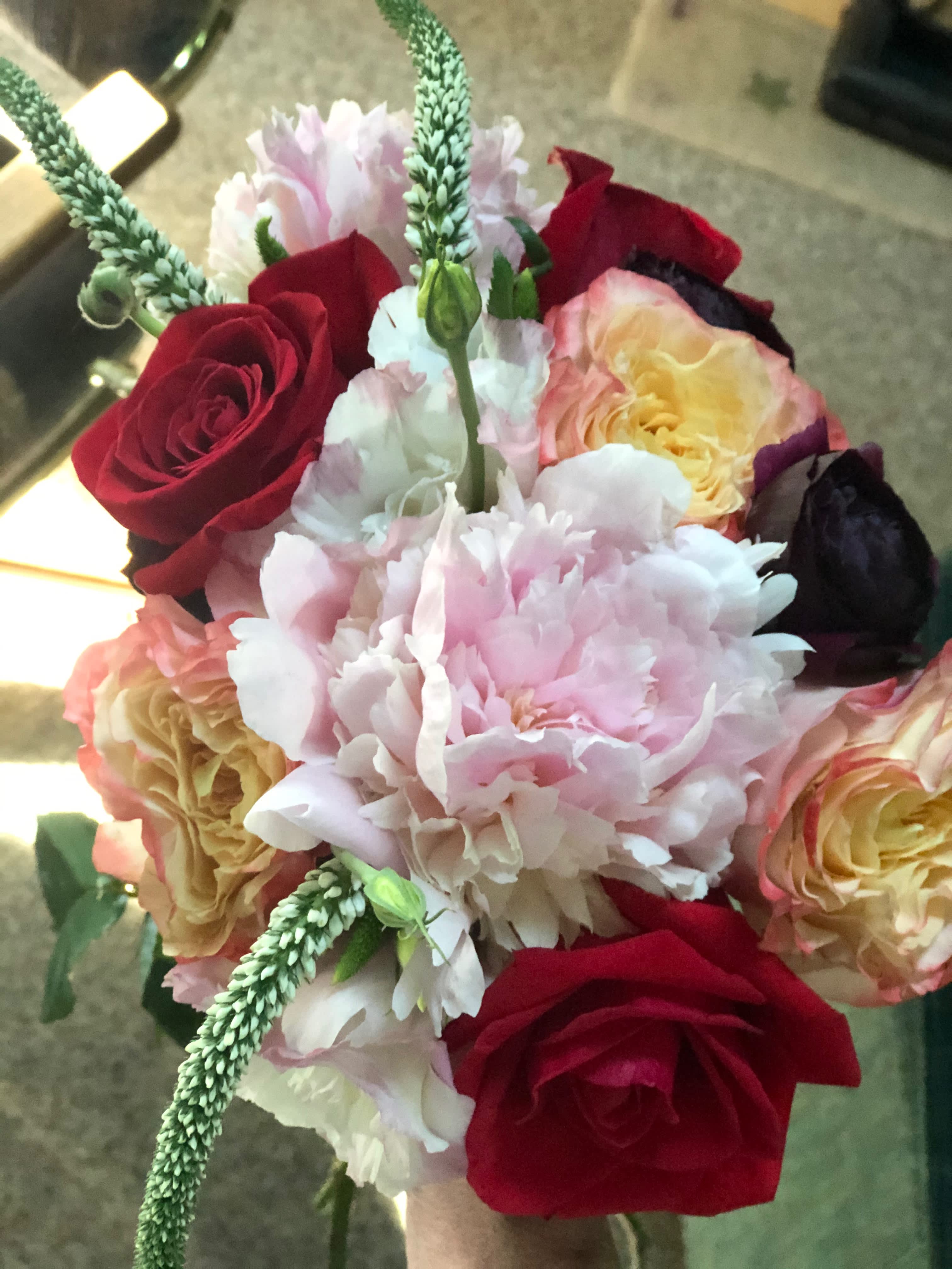 I am a Studio florist. Not a brick and mortar place of business. I am a (CFD) Certified Floral Designer with AIFD, (American Institute of Floral Design) and a women's owned business. Can't decide??? One of our Designer's Choice would be your best option.